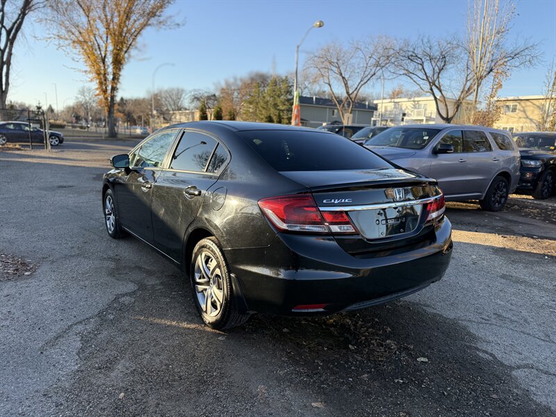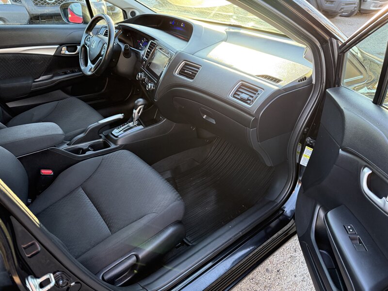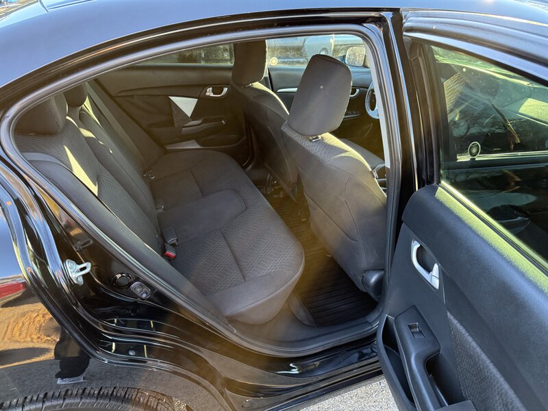 Introducing the 2015 Honda Civic LX, a compact sedan known for its reliability, efficiency, and comfort. This model is powered by a robust 1.8L I4 engine, delivering 143 horsepower and 129 lb-ft of torque, providing a well-balanced driving experience for both city and highway travel.