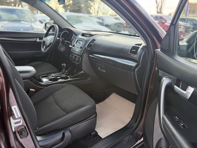 Introducing the 2015 Kia Sorento LX, a versatile and reliable midsize SUV designed to meet the needs of families and adventurers alike. Powered by a robust 2.4L I4 engine, this vehicle delivers 191 horsepower and 181 ft-lbs of torque, providing a balanced blend of performance and efficiency for everyday driving.