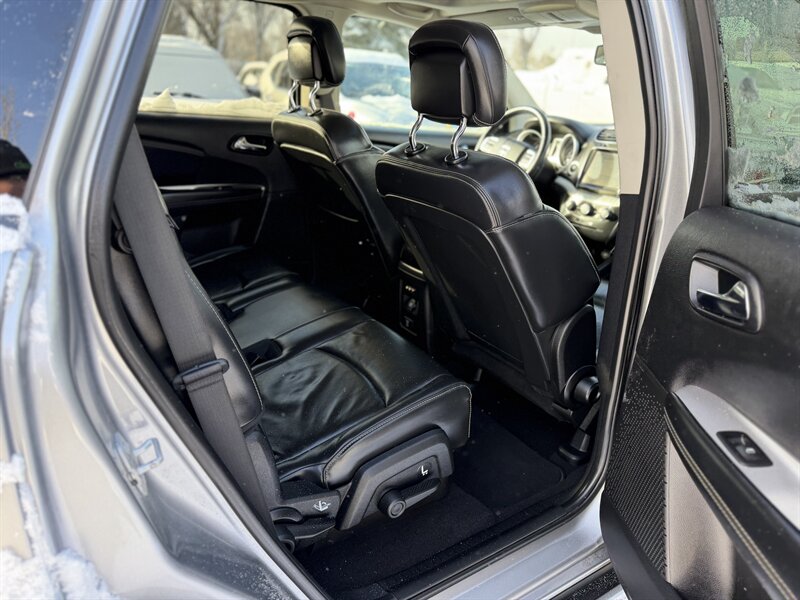 - Seating and cargo: Designed to seat up to seven, the Journey features three rows of seating. The second and third rows fold to expand cargo capacity, offering a flexible layout for passengers and cargo. Higher-trim R/T models come with leather-trimmed seating surfaces and heated front seats as factory equipment.