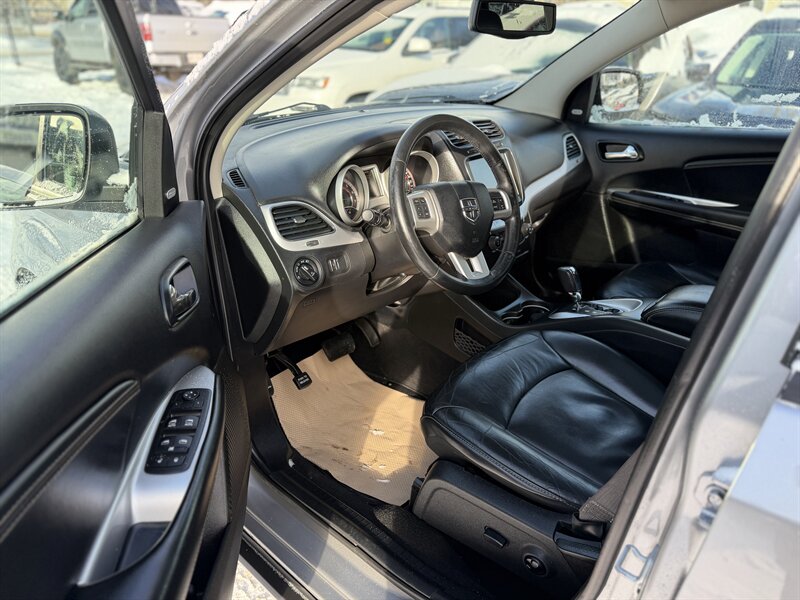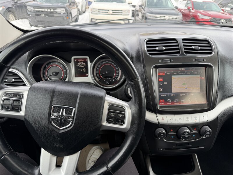 - Safety and security: Standard factory safety equipment includes antilock brakes (ABS), electronic stability control, traction control, front-impact airbags, side-impact airbags, and full-length curtain airbags. The Journey also includes child-seat LATCH anchors and tire pressure monitoring. Backup camera and parking sensors were available on many factory option packages.