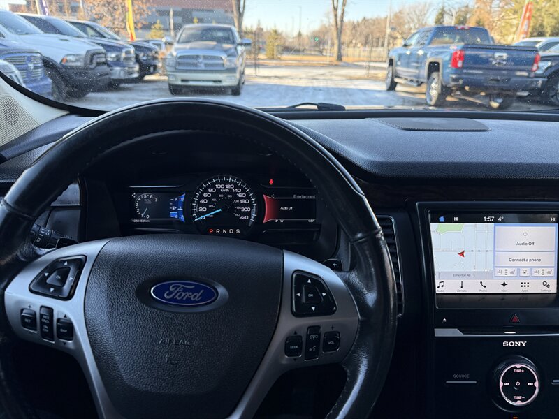 The exterior of the Ford Flex Limited is characterized by its bold, distinctive design. The sleek lines and modern profile are complemented by a sophisticated front grille and LED daytime running lights. With a set of 20-inch alloy wheels, this vehicle stands out in both style and presence.