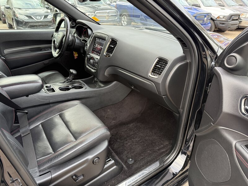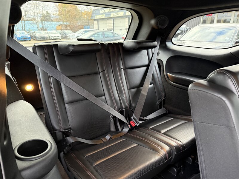 Safety is a priority in the Durango R/T, with a suite of advanced features including adaptive cruise control, blind-spot monitoring, rear cross-traffic alert, and a rearview camera. The vehicle also comes equipped with multiple airbags and stability control systems to enhance driver and passenger safety.