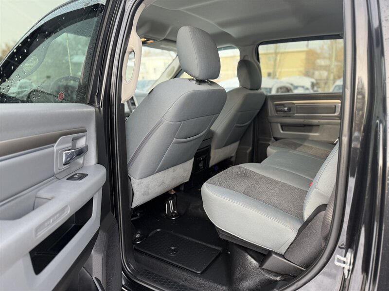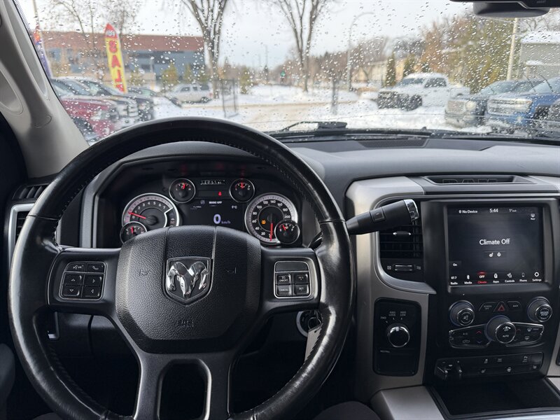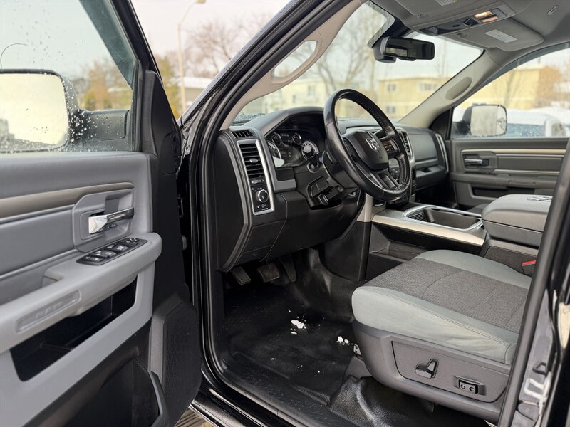 - Exterior: Bold RAM styling with chrome-accented grille and bumpers, halogen headlamps, large towing-capable mirrors, and factory alloy wheels. Durable exterior trim designed for regular work use.