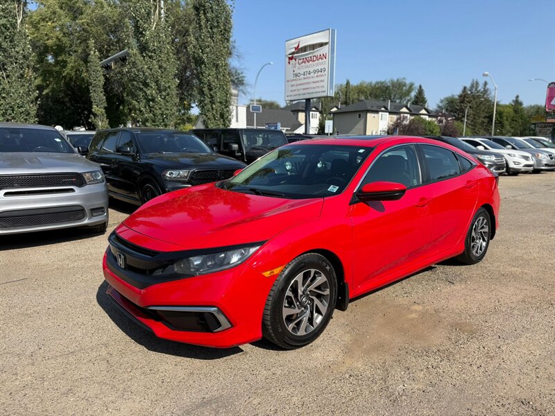 This 2019 Honda Civic EX comes equipped with a host of factory default features that enhance both comfort and convenience for its occupants. The vehicle boasts a modern infotainment system with a responsive touchscreen display, Bluetooth connectivity for hands-free calling and audio streaming, and a rearview camera for added safety when reversing. The Civic EX also includes Honda Sensing suite of driver-assist technologies such as adaptive cruise control, lane-keeping assist, and collision mitigation braking system. The interior of the vehicle offers ample space for passengers and cargo, with high-quality materials used throughout. With its clean CARFAX report and excellent overall condition, this Honda Civic EX is a reliable and stylish option for those in search of a compact sedan.